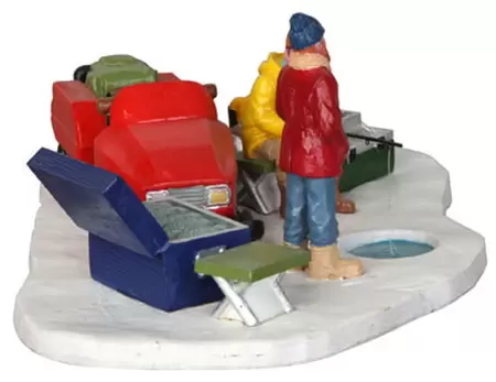 Lemax The fishing spot is a nice Christmas village scene to add and to decorate your Christmas Lemax mini village. The The fishing spot has been added in the year 2014 to the Lemax Village Collection and belongs to the Lemax village Vail Village.