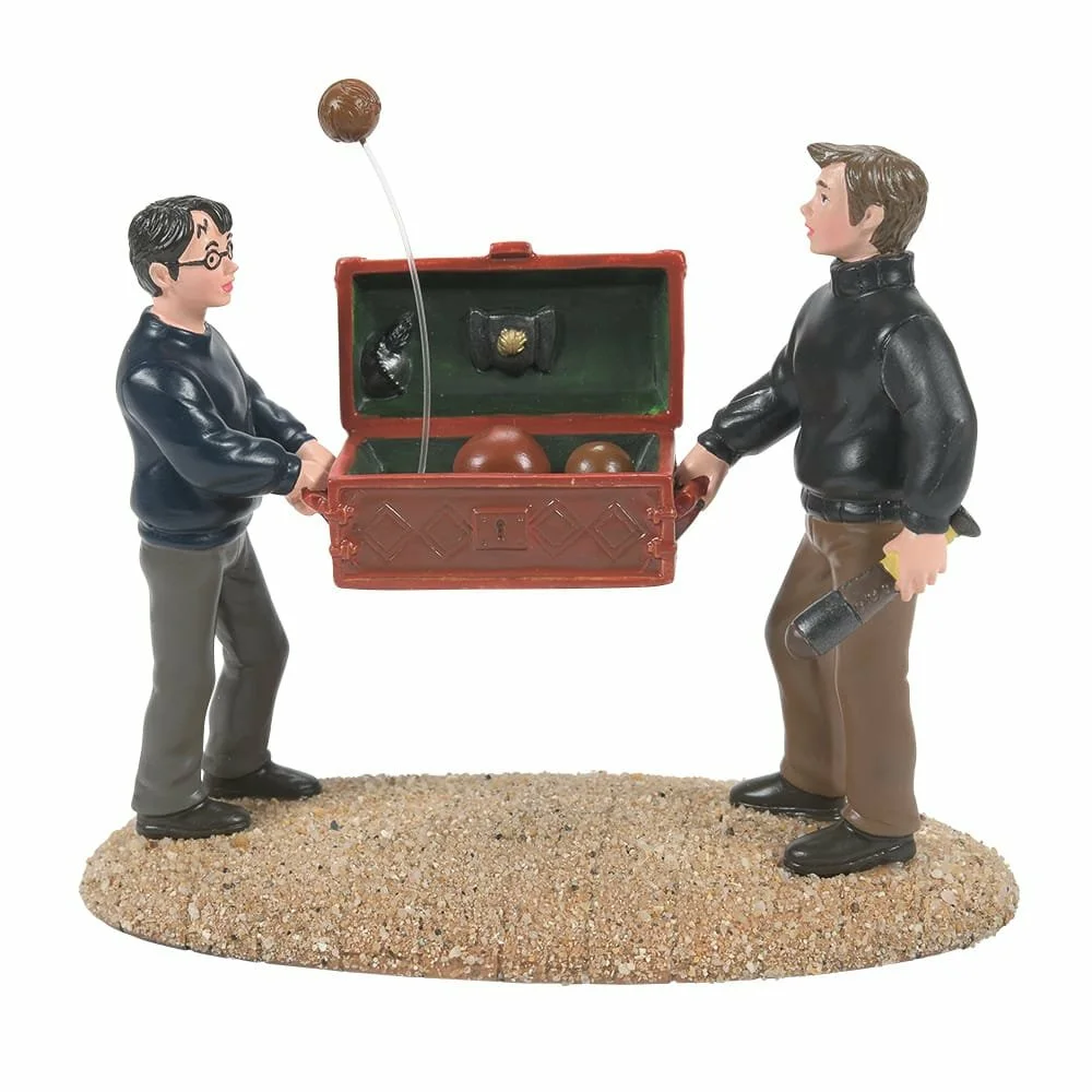 Harry Potter and Oliver Wood are getting ready to play Quidditch, but one ball isn’t cooperating. This Bludger is trying to escape – catch it quickly! This figurine is based on scenes from Harry Potter and the Philosopher’s Stone and has been handcrafted and hand-painted.