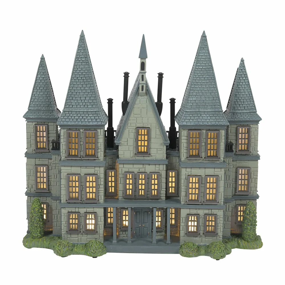 Malfoy Manor from the Harry Potter Village collection by Department 56 is an impressive and detailed model of the iconic estate of the Malfoy family. This handcrafted and hand-painted piece brings the magic of the wizarding world to life. The model is illuminated and powered via a USB cable.
