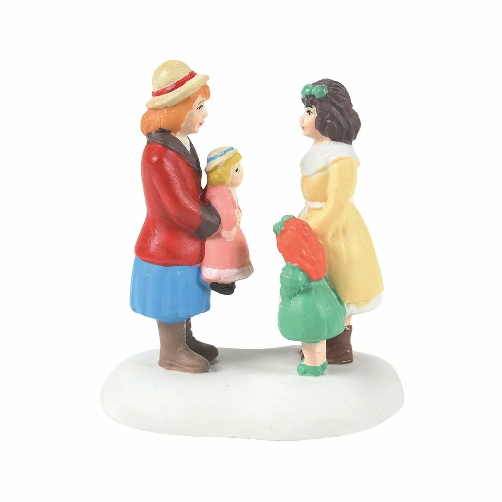 Two sweet girls proudly showing off their new dolls, part of the Dickens' Village collection by Department 56.